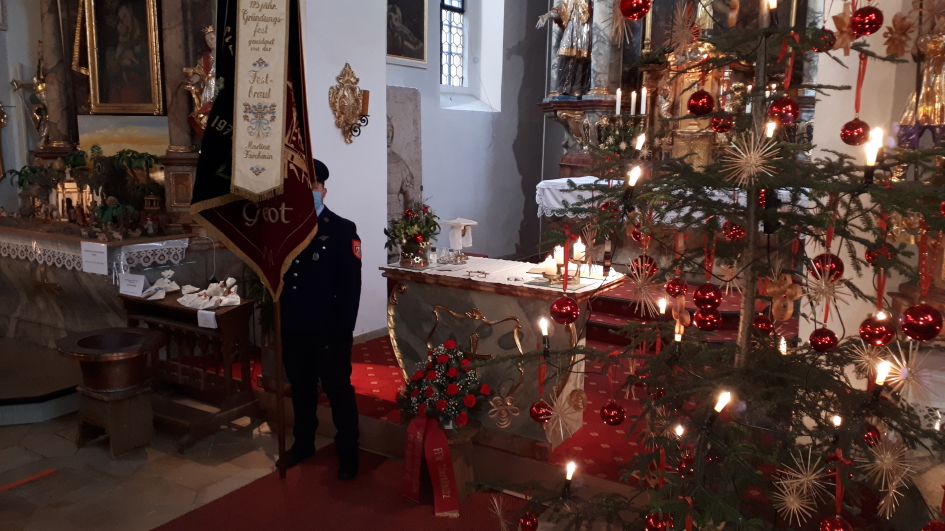In Gedenken an unsere verstorbenen Mitglieder haben wir eine Blumenschale vor dem Altar in der Kirche abgelegt und eine Abordnung der Vorstände und Kommandanten mit der Fahne am Gottesdienst in St. Emmeram teilgenommen. An dieser Stelle ein herzliches Vergelt`s Gott an Herrn Pfarrer i.R. Bergmann für die feierliche Gestaltung des Gedenkgottesdienstes.