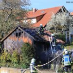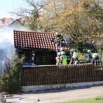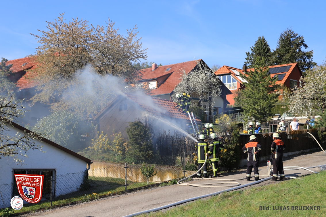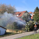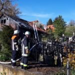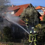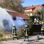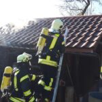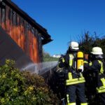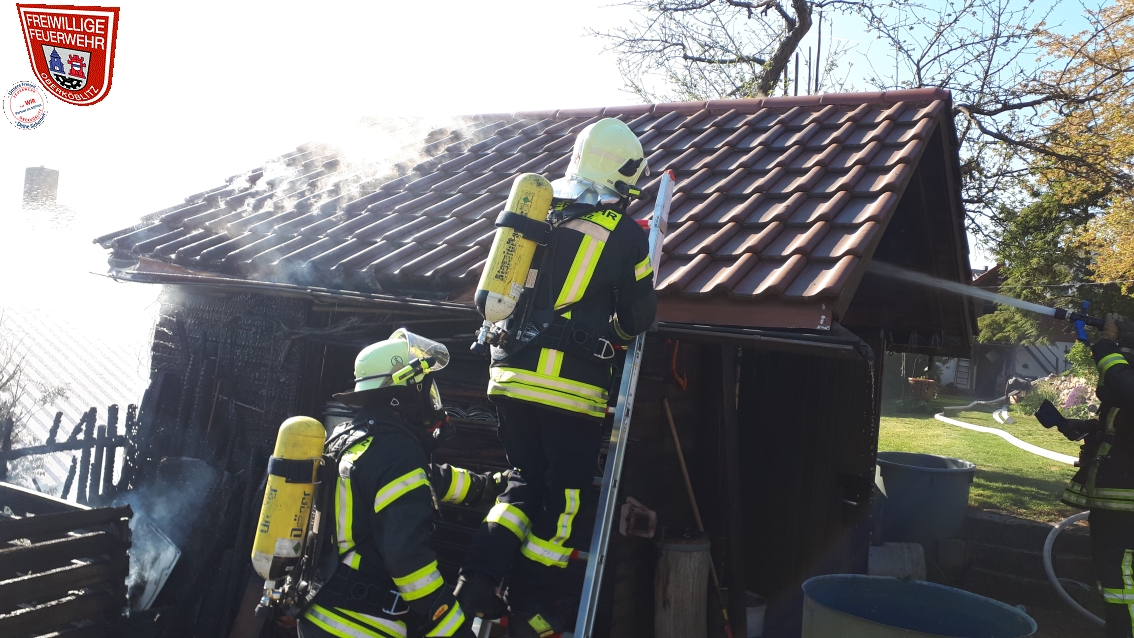 Im Verlauf des Einsatzes musste das Dach des Gartenhauses abgedeckt und geöffnet werden, um die darunter liegenden Glutnester abzulöschen. Dazu musste auch eine Vertäfelung, die an sich an der Giebelseite befand, entfernt werden.