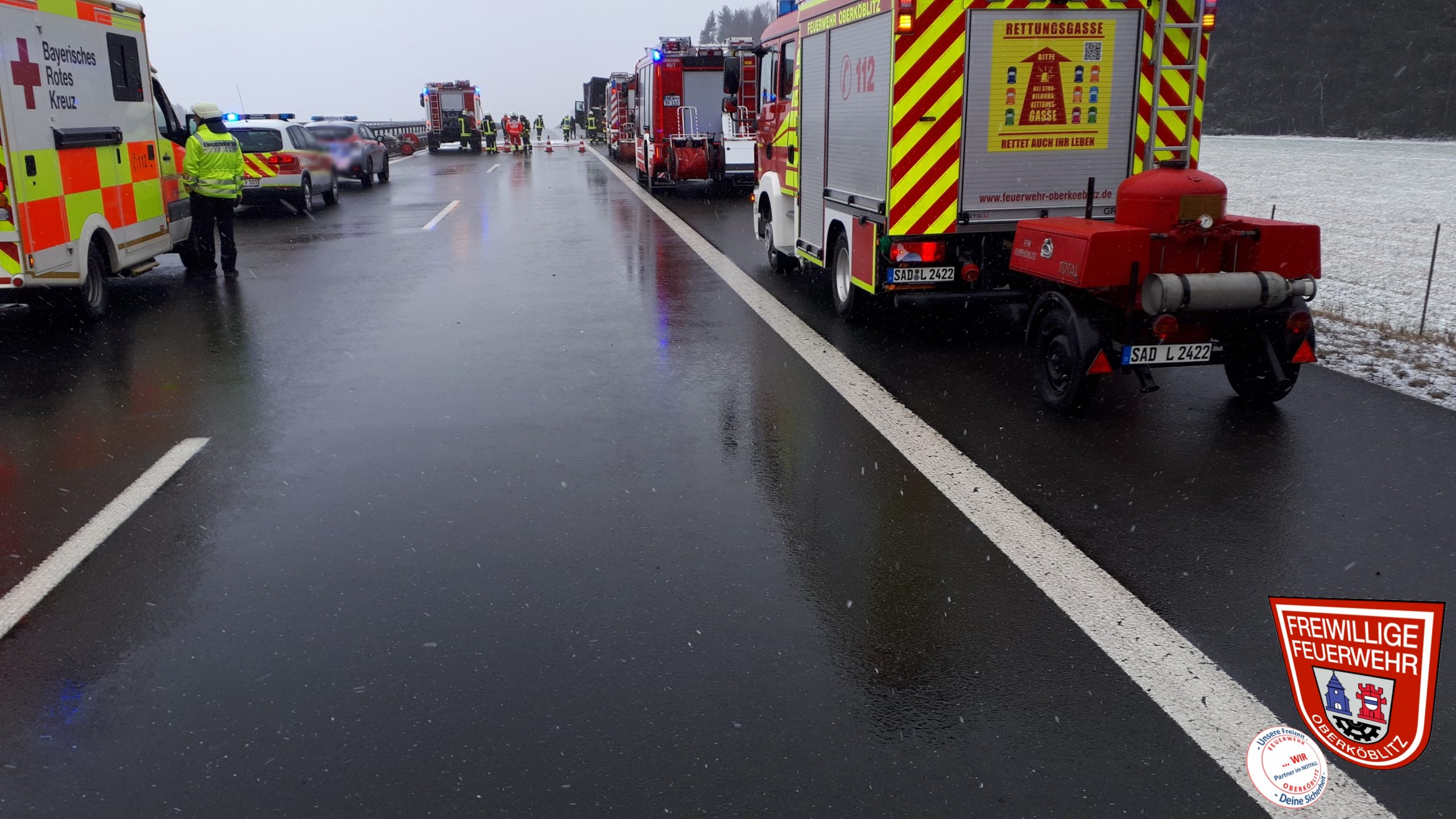 Wir unterstützten die Kräfte vor Ort mit unserem MLF und P250 sowie bei der Ausleitung mit Verkehrssicherungsanhänger an der Anschlussstelle Leuchtenberg.