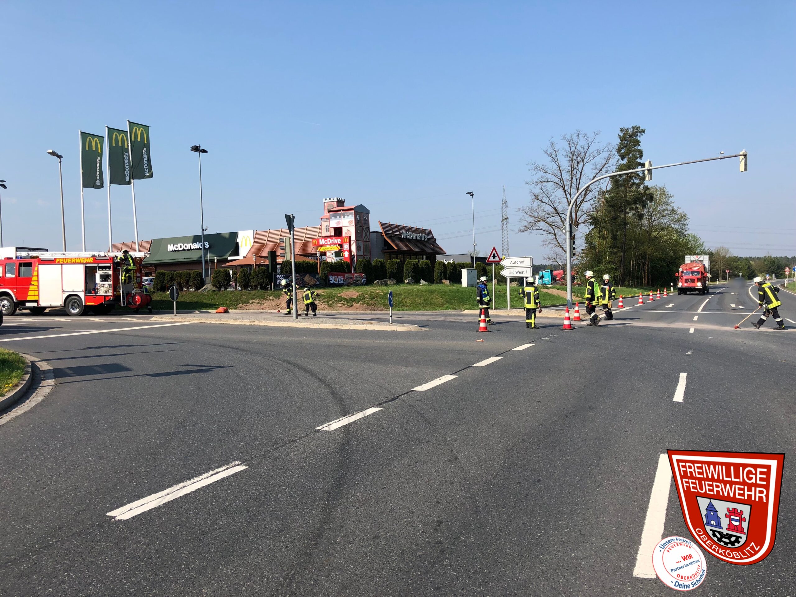 Heute wurden wir zu einer Fahrbahnreinigung aufgrund einer Ölspur durch die ILS Amberg alarmiert. Beim Eintreffen stellte sich heraus, dass sich diese schon von der A93 kommend in Richtung Gewerbegebiet West 1 zog. Aus diesem Anlass wurde von uns die Feuerwehr Oberwildenau und Luhe nachalarmiert um auf der A93 und der Ausfahrt Wernberg-Köblitz die Ölspur zu binden. Unsere Kräfte reinigten den Bereich Conrad-Kreuzung und Gewerbegebiet West 1.