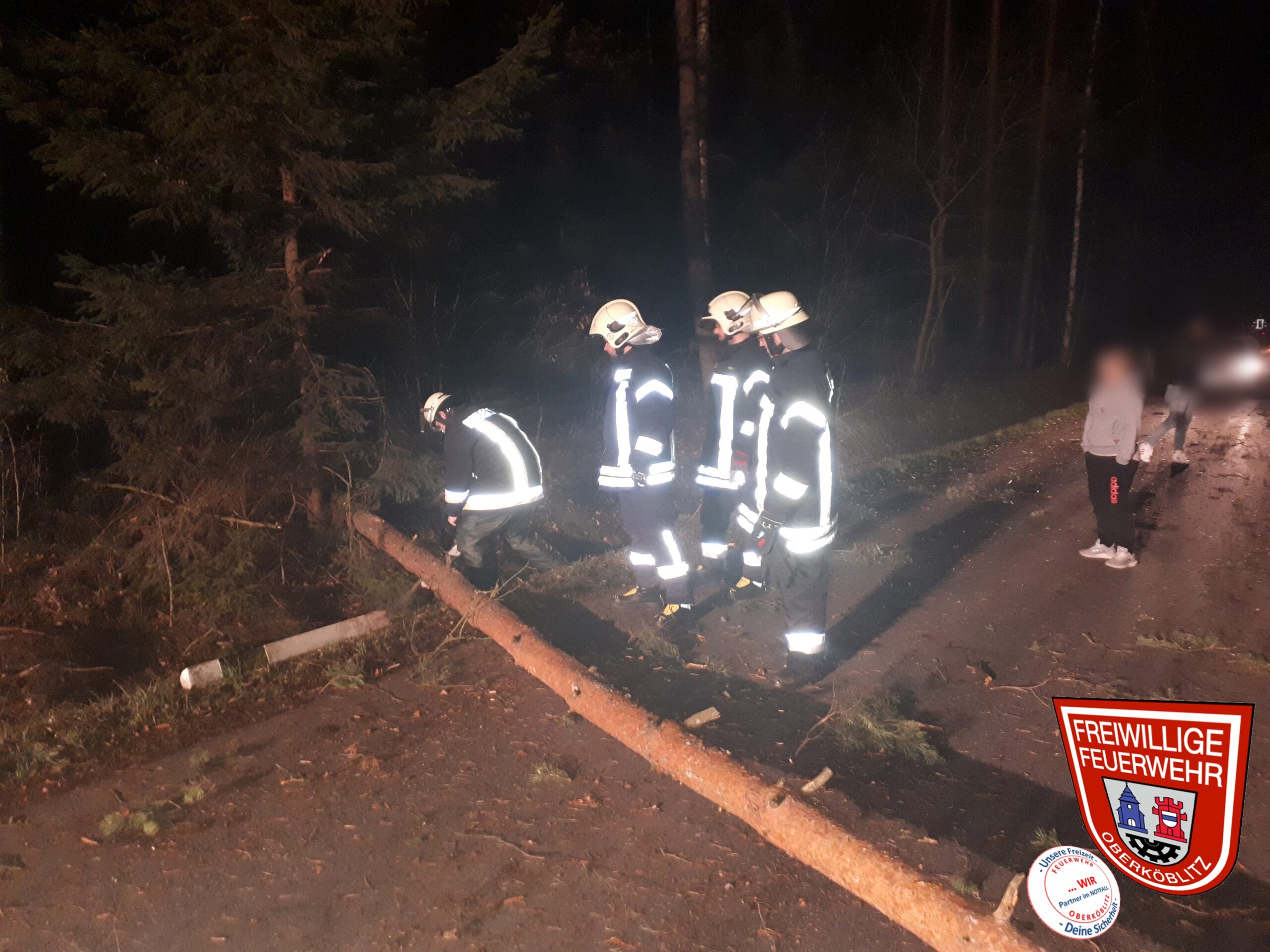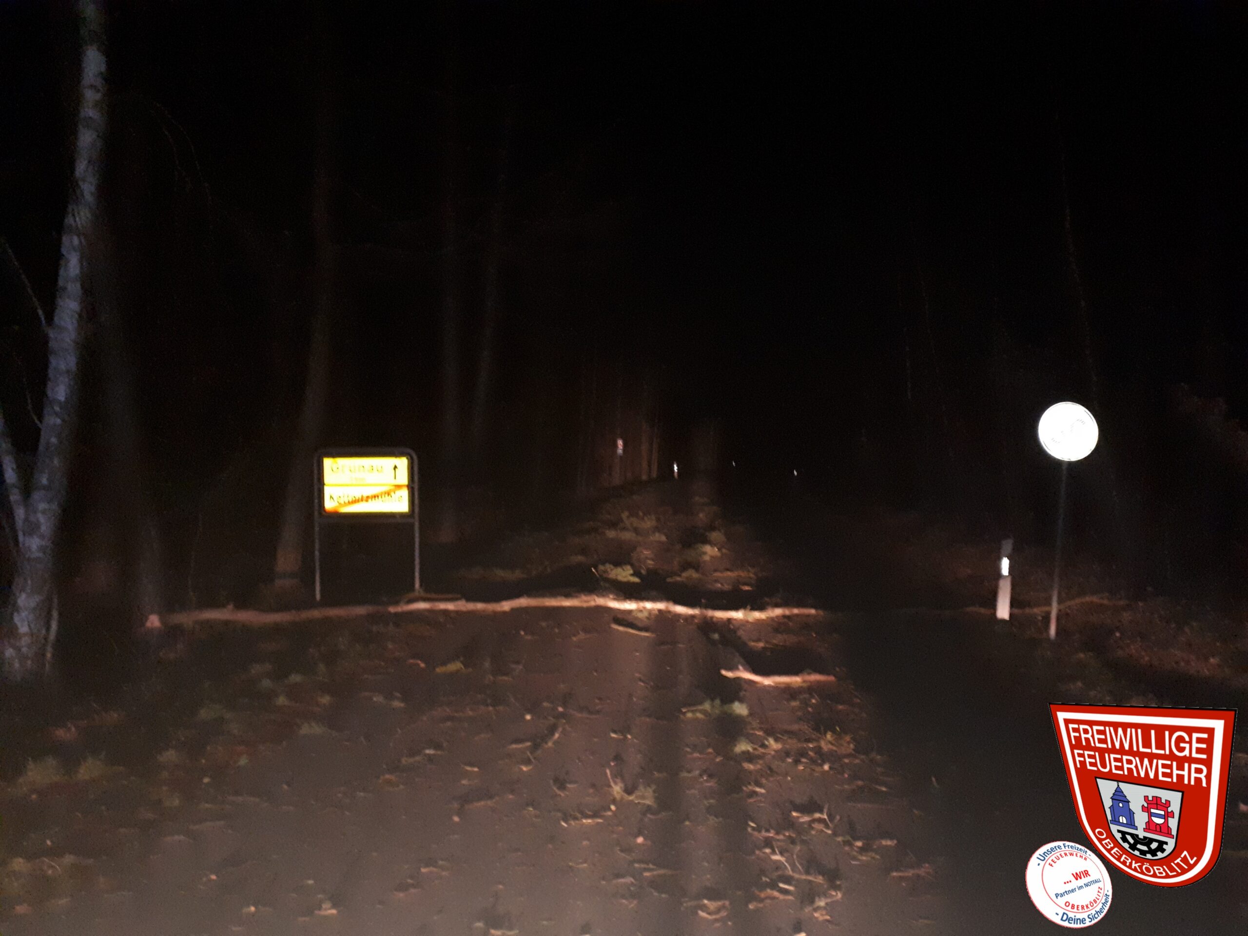 Im weiteren Verlauf des Einsatzes wurde unser Schutz Bereich dann kontrolliert. Gegen 21.22 Uhr wurde auf der ST2657 zwischen Diebrunn und Luhe ein umgestürzter Baum vorgefunden der die Fahrbahn blockierte und von uns beseitigt werden musste.