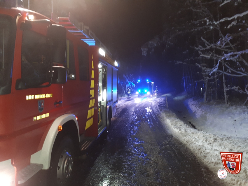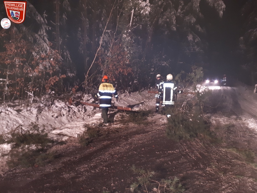 Nächster Alarm – Einsatzmeldung Baum über Fahrbahn zwischen Kettnitzmühle und Grünau heute morgen. Die Schneefälle vom Wochenende mit schweren Schnee und anschließenden Dauerfrost stellen aktuell noch eine große Last auf den Bäumen dar. So mussten wir erneut zur Baumbeseitigung ausrücken. Im genannten Bereich wurden von uns zwei Bäume geschnitten, die über die Fahrbahn lagen und ragten. Desweiteren wurde bei weiteren Bäumen Schnee von den Ästen entfernt und somit auch hier Gefahr für die Verkehrsteilnehmer gebannt.