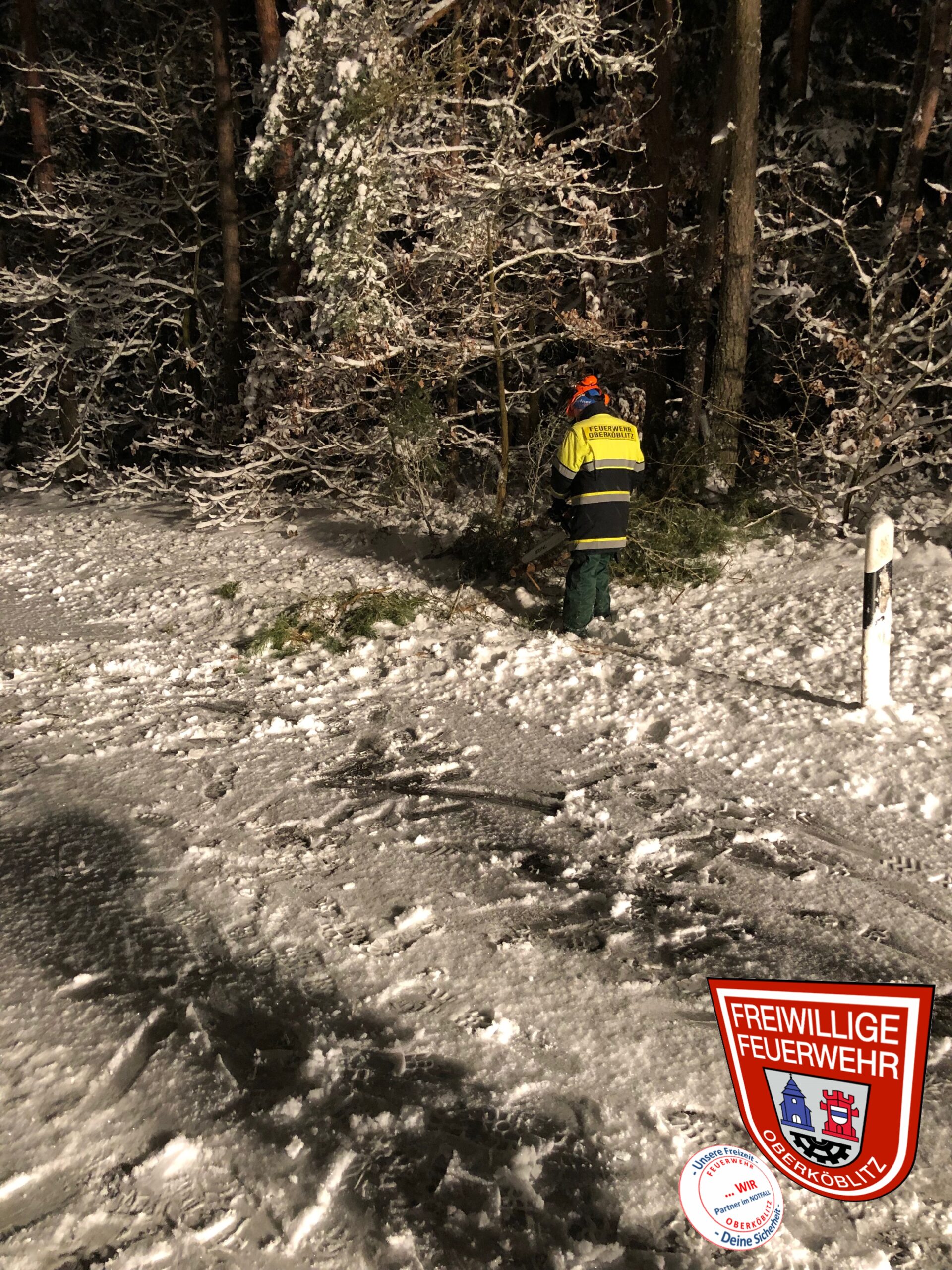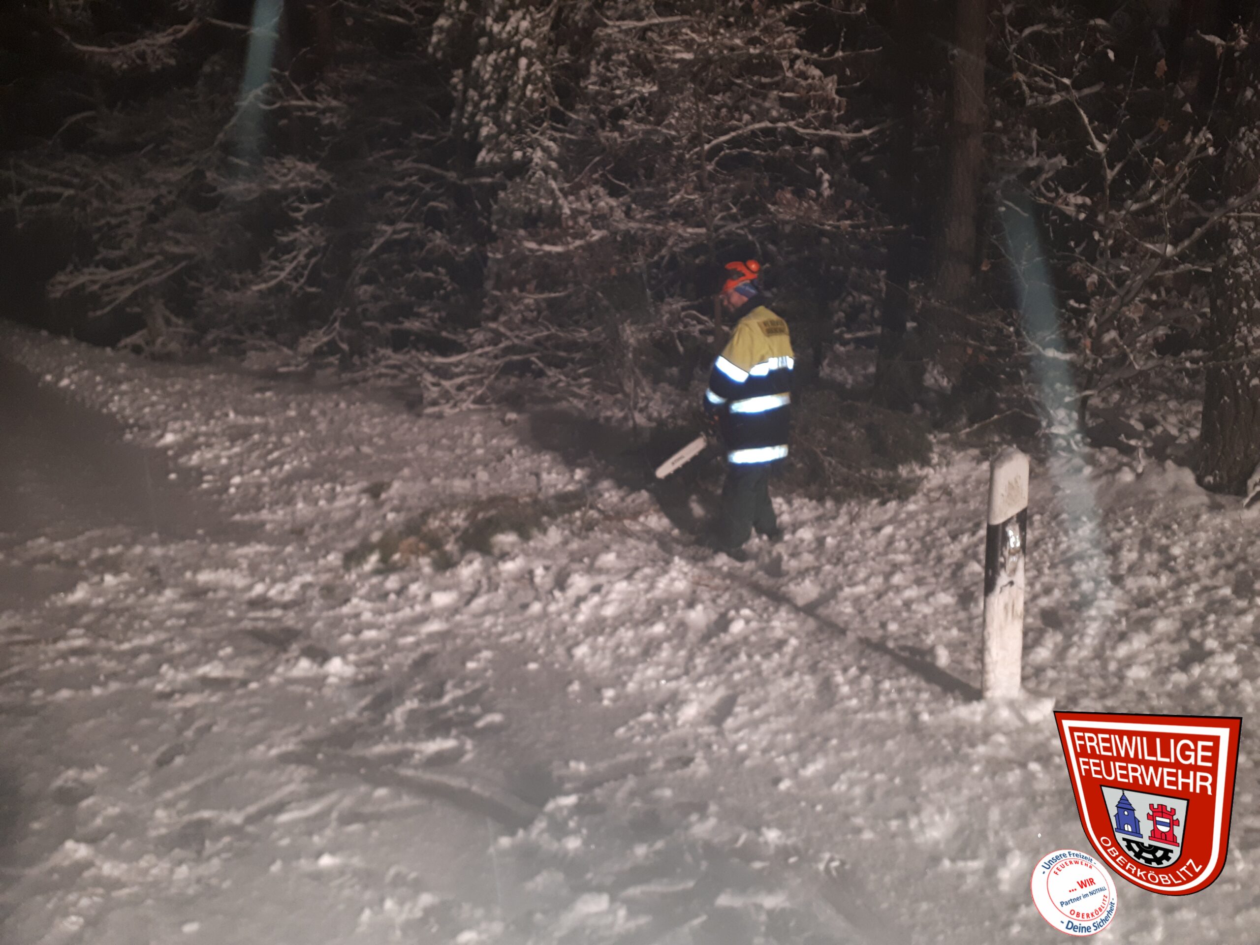 Auch wir wurden heute nicht von dem heftigen Schneefall verschont. Aufgrund dessen wurden wir von seitens des Bauhofes über einen umgestürzten Baum zwischen Kettnitzmühle und Grünau verständigt, dieser wurde von uns beseitigt. Desweiteren kontrollierten wir die restliche Strecke und rückten danach wieder ins Gerätehaus ein.