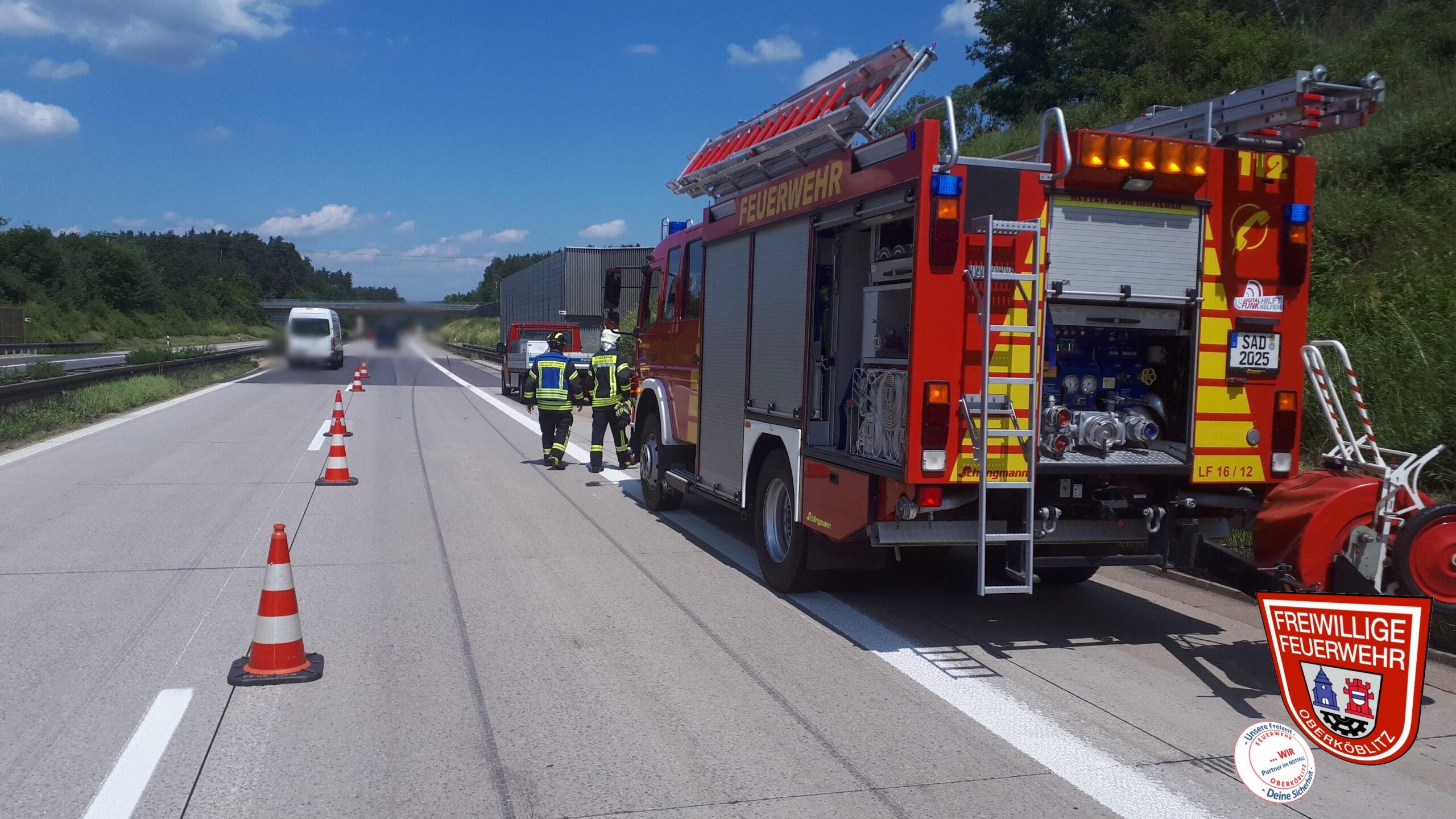 Wir wurden durch die ILS Amberg aufgrund eines Motorschadens an einem Fahrzeug, zu einer Fahrbahnreinigung auf die A93 alarmiert. Wir übernahmen die Verkehrslenkung und reinigten die Fahrbahn.