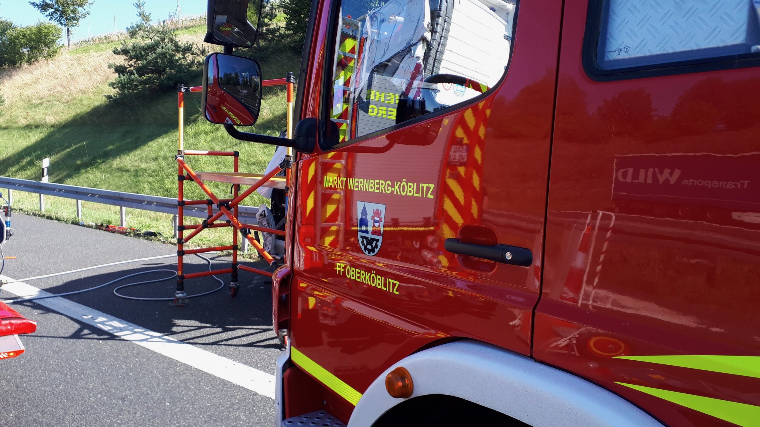 Wir unterstützen die örtliche zuständige Feuerwehr Wernberg bei der Bergung und Verkehrslenkung.