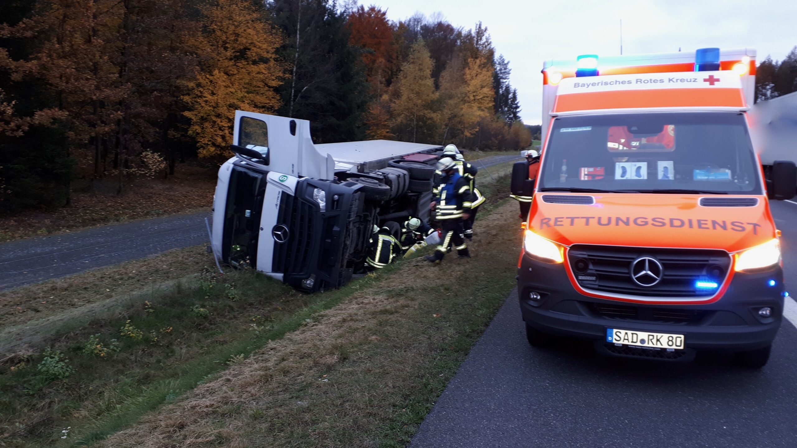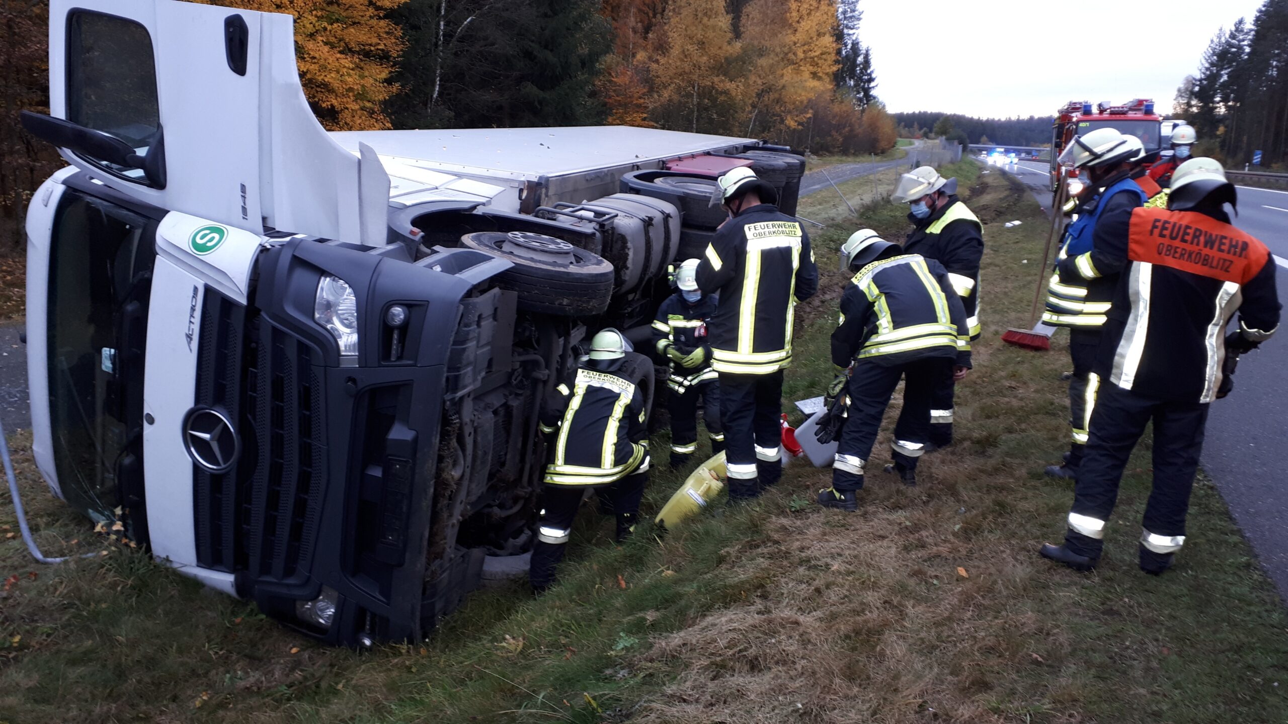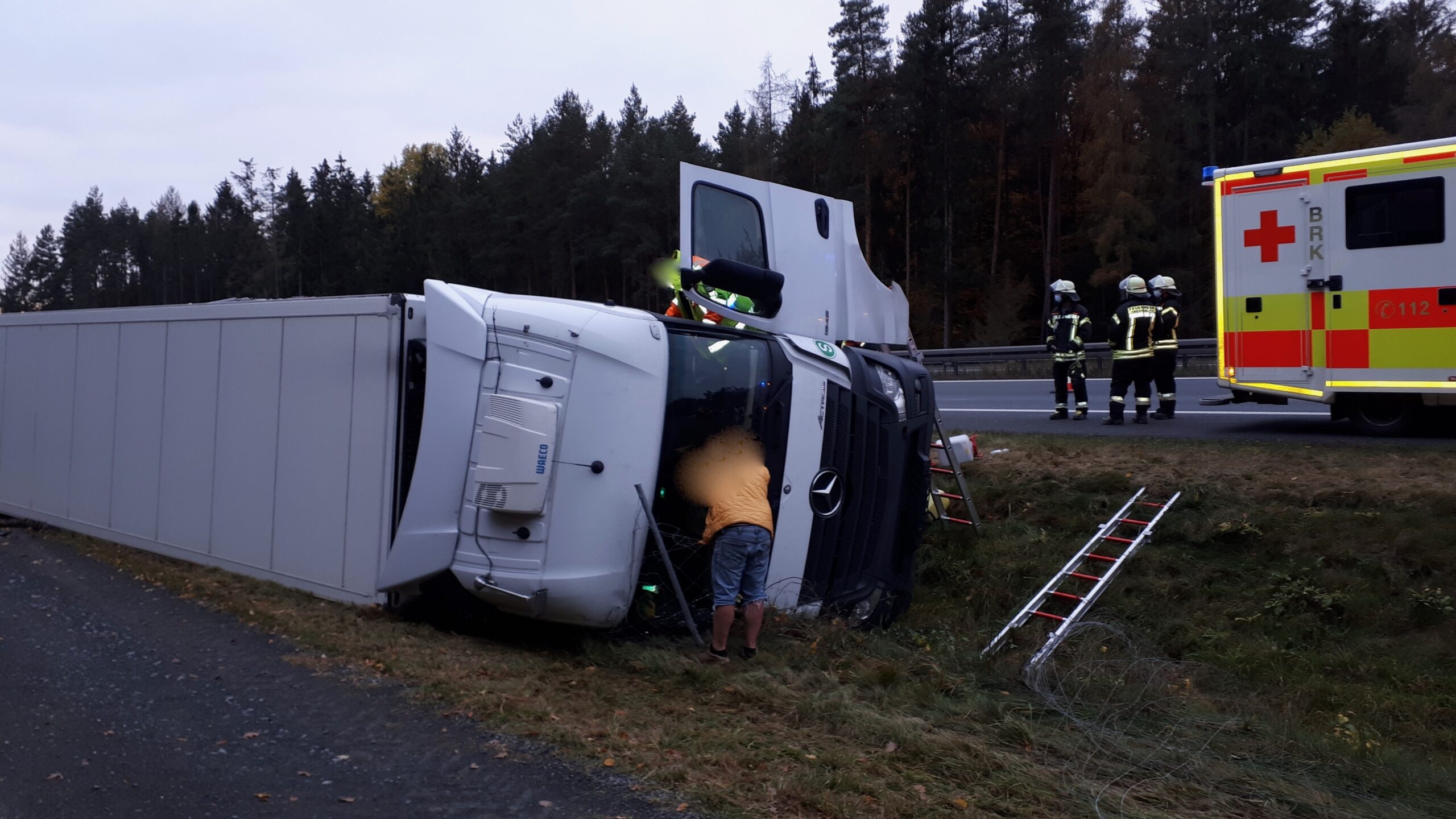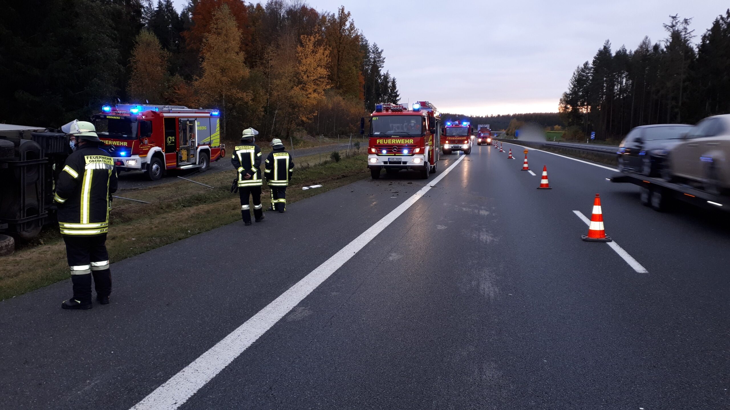 THL I Umgekippter LKW auf der A6 zwischen Wernberg-Ost und Leuchtenberg
