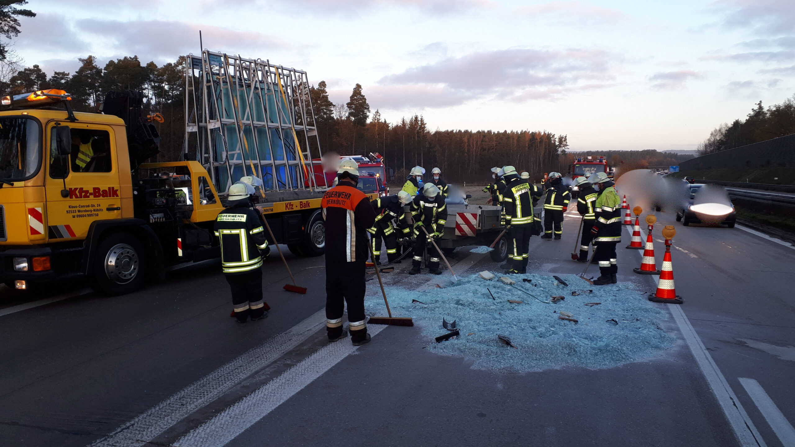 Zu einem Verkehrsunfall wurden wir auf die A93 alarmiert. Beim Einfahren in die A93 war der Anhänger eines Klein-LKW umgestürzt. Die auf dem Anhängern geladenen Glasscheiben gingen zu Bruch und verteilten sich über die Fahrbahn. Der Klein-LKW wurde ausgehoben und dadurch der Beschleunigsstreifen und die normale Fahrspur blockiert.