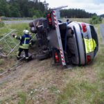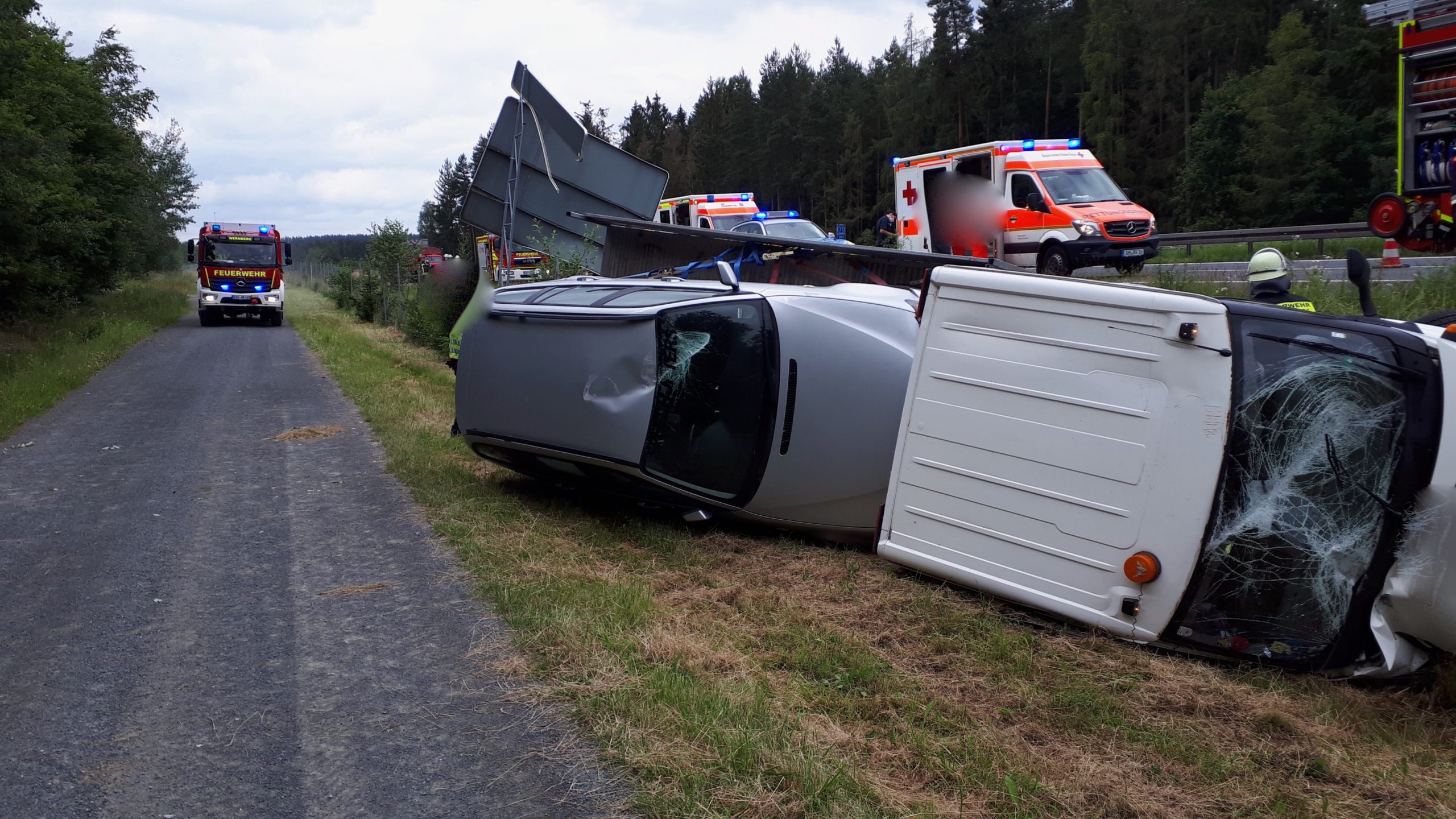Da das Fahrzeug mit geladenen PKW neben der Autobahn zum liegen kam, fuhr die FF Wernberg über einen neben der Autobahn verlaufenden Weg an.