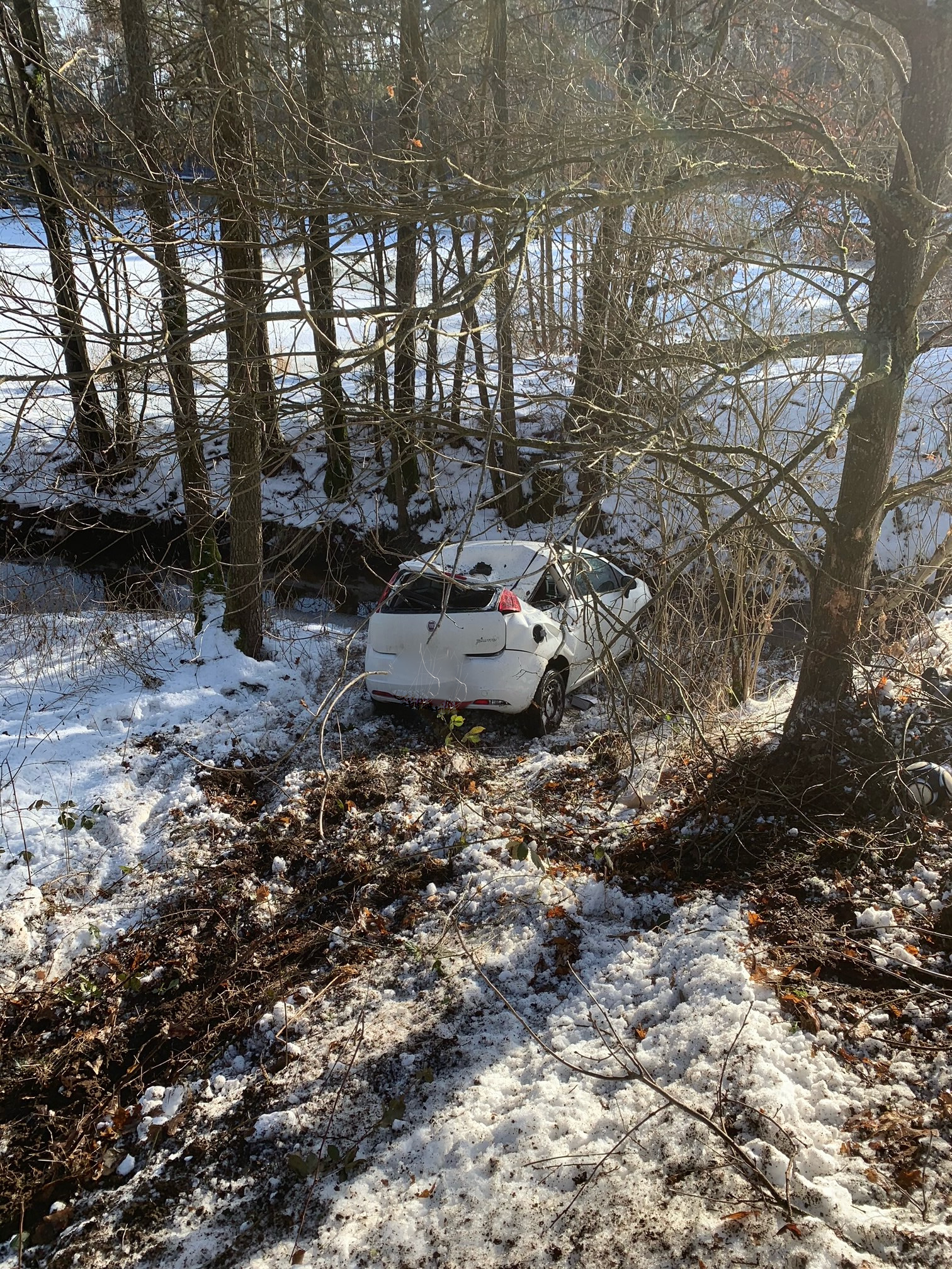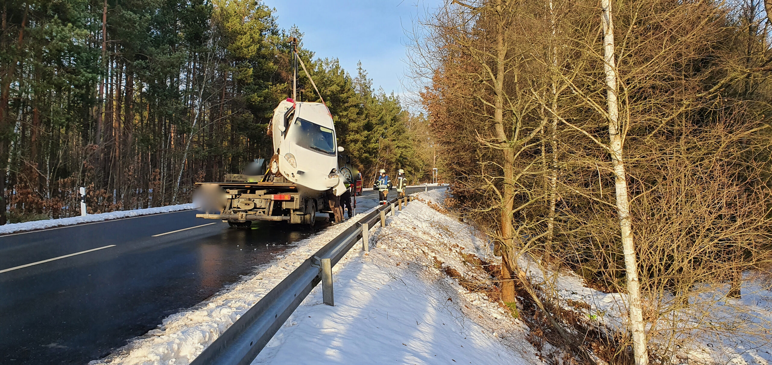 Zwischenzeitlich erreichte uns die Meldung eines weiteren Verkehrsunfall zwischen Kettnitzmühle und Grünau. Das abgerückte HLF der FF Wernberg übernahm diesen Einsatz. Auch hier war ein PKW in einem Waldstück aufgrund Glätte von der Fahrbahn abgekommen.