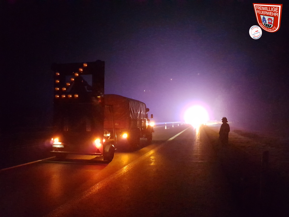Wir übernahmen die Verkehrsabsicherung und -lenkung des Verkehrs, während die Kollegen aus Wernberg die Arbeiten an dem verunfallten Fahrzeug ausführten.