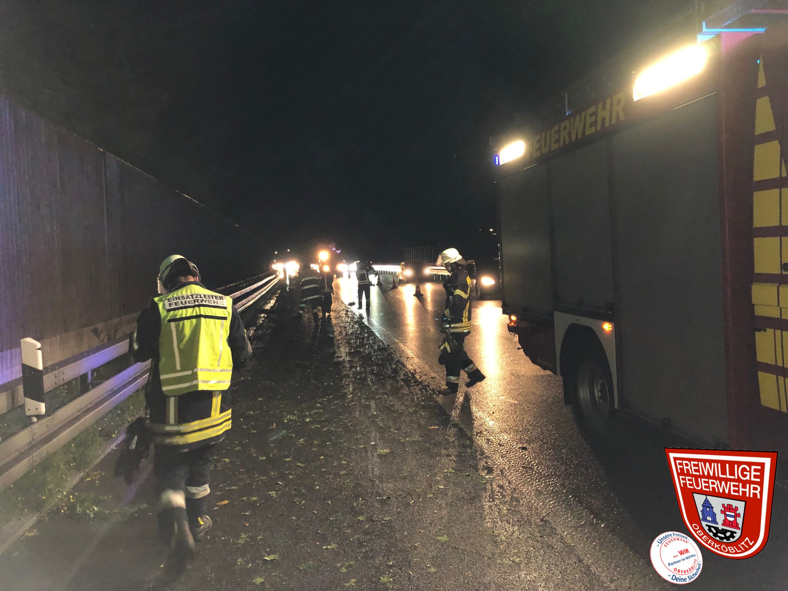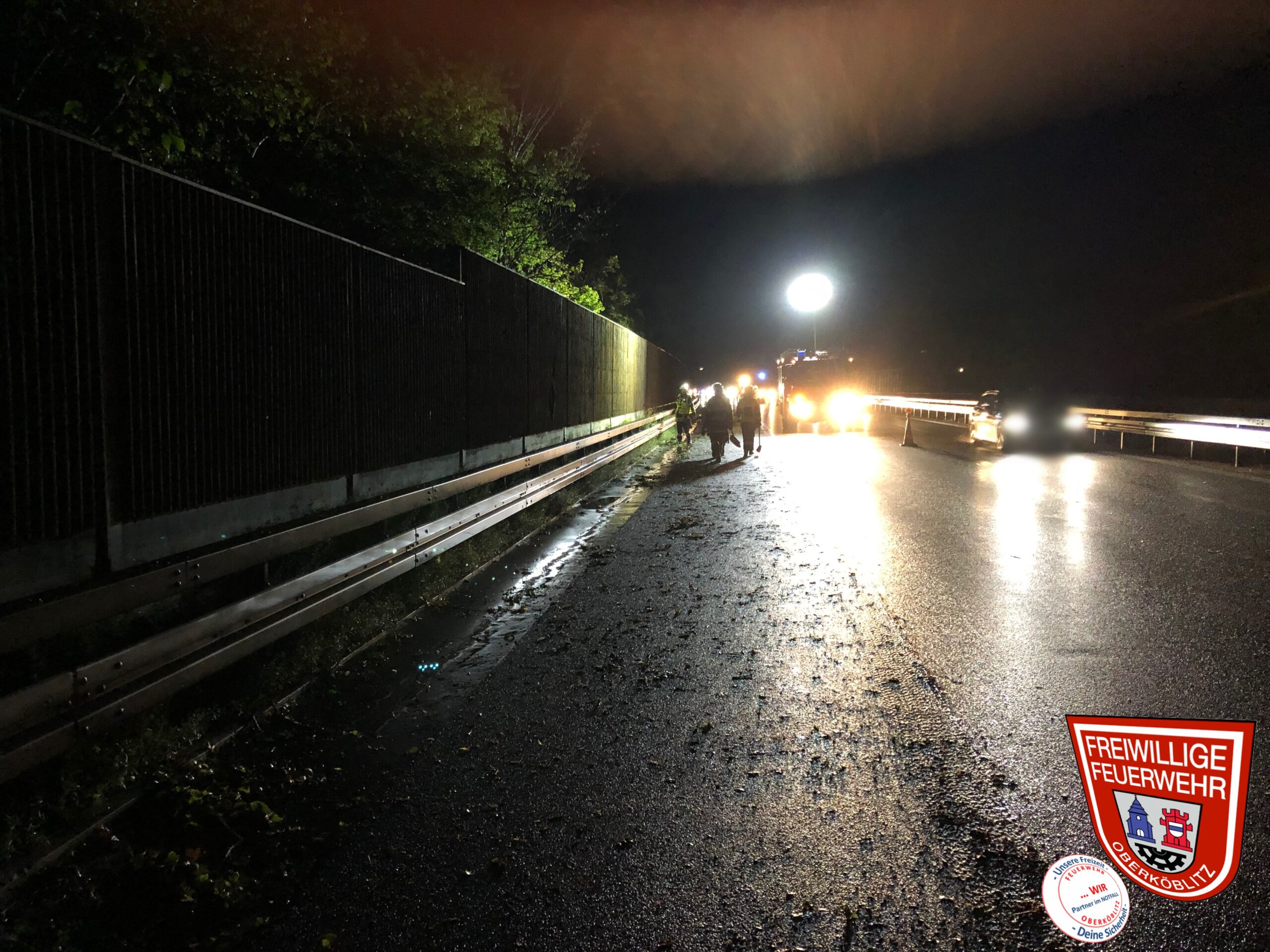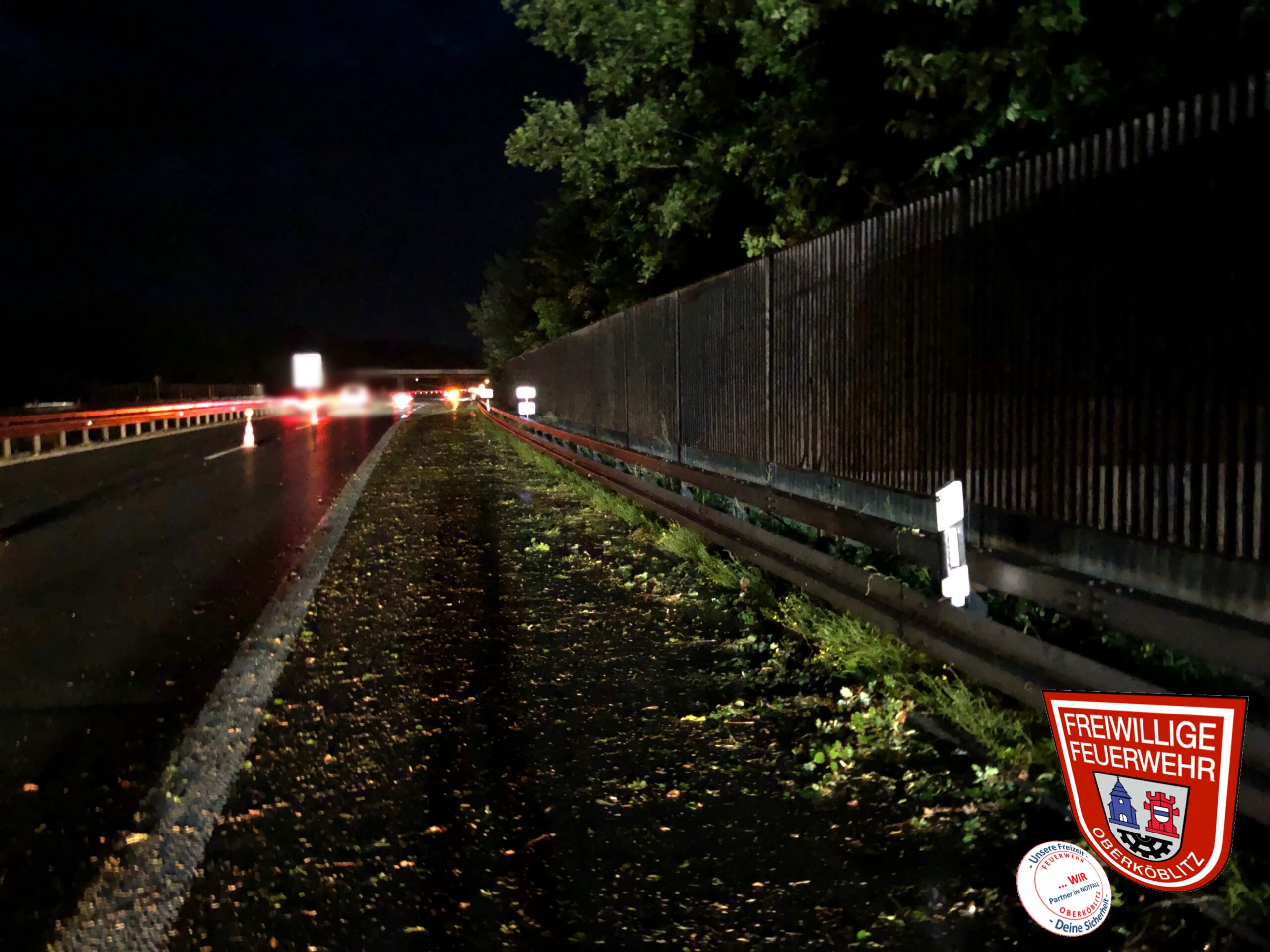 Der erste Alarm rief uns auf die A93 im Bereich der Anschlussstelle Pfreimd wo ein stärkerer Ast von der Überholspur entfernt werden musste. Ebenso musste Äste von der Standspur, sowie Laub auaus den Entwässerungsschächten in einem Bereich von etwa 500m entfernt werden.