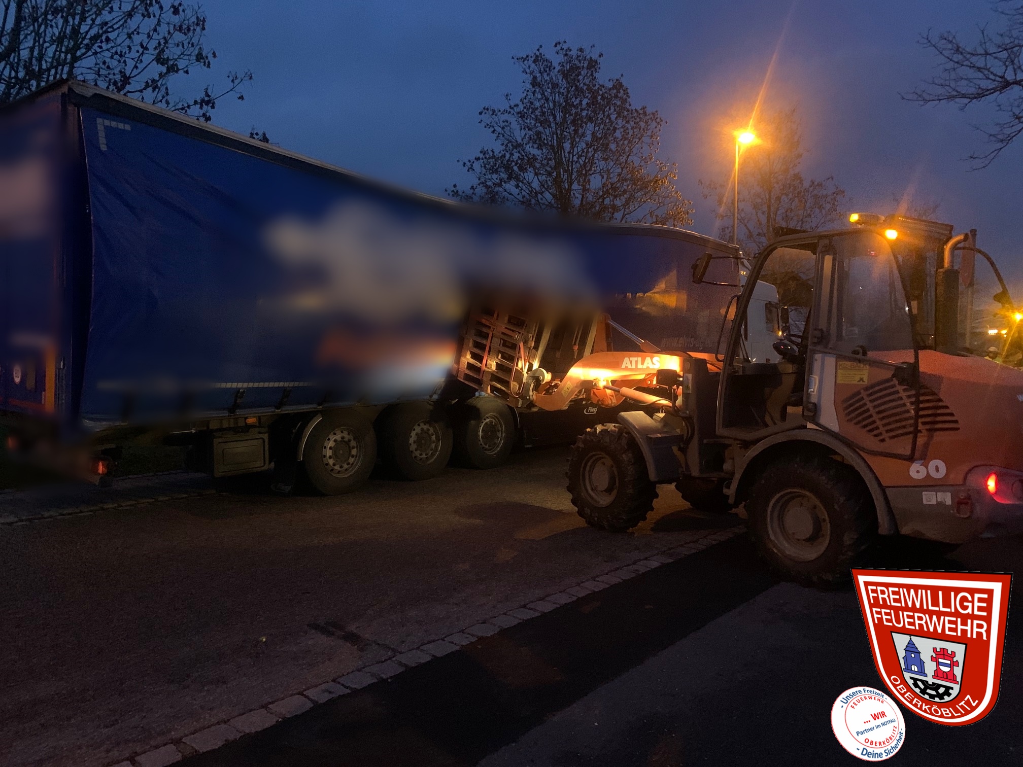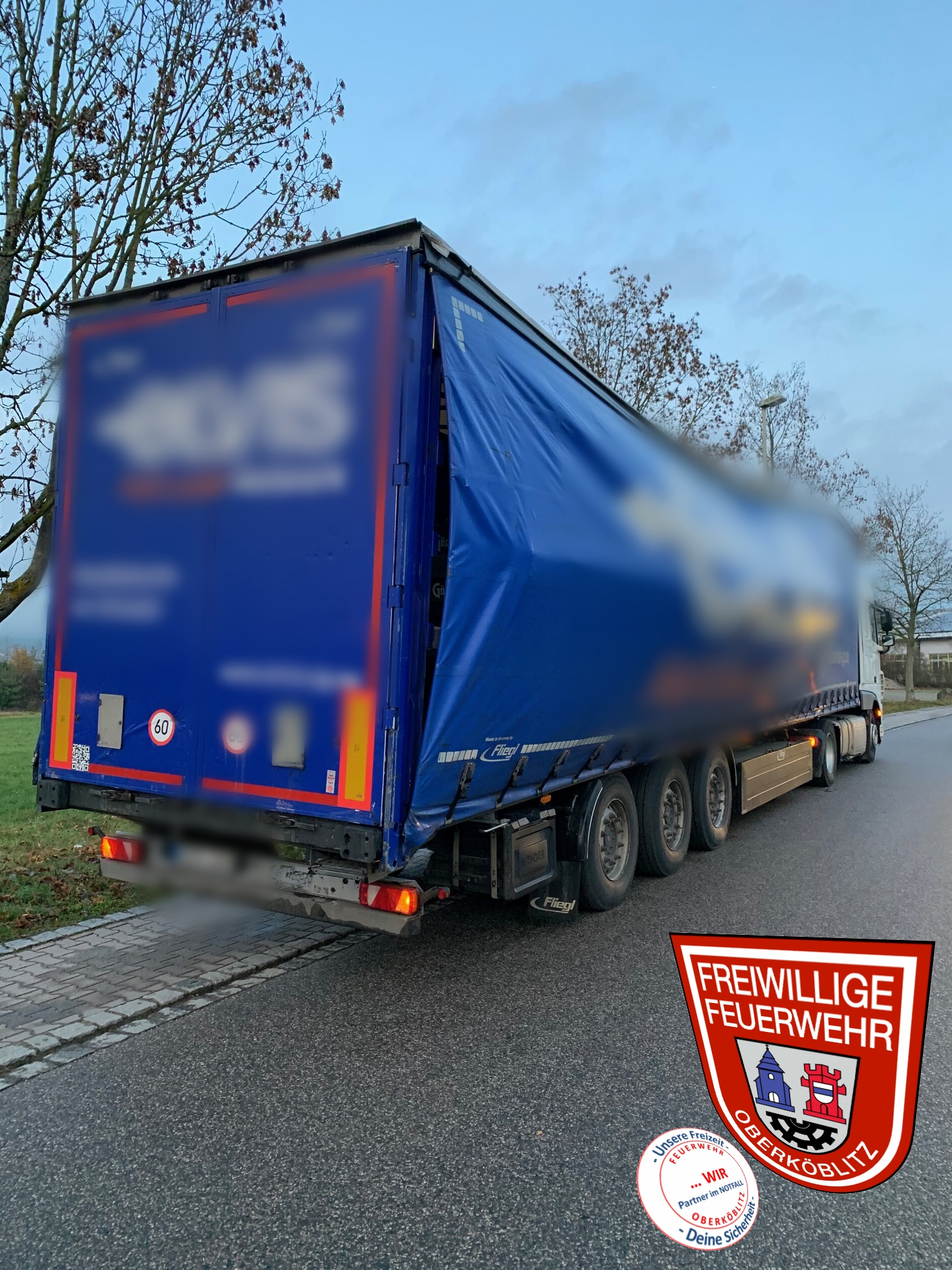 Wir wurden telefonisch von einem ortsansässigen Abschleppunternehmens informiert, dass im Gewerbegebiet West 1 bei einem LKW die Ladung verrutscht sei. Wir übernahmen auf Anfrage des Unternehmens während der Arbeiten des Abschleppunternehmens die Verkehrabsicherung und Straßensperrung im Gewerbegebiet West 1.