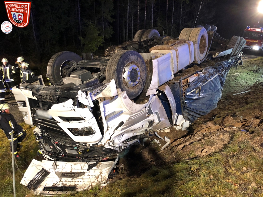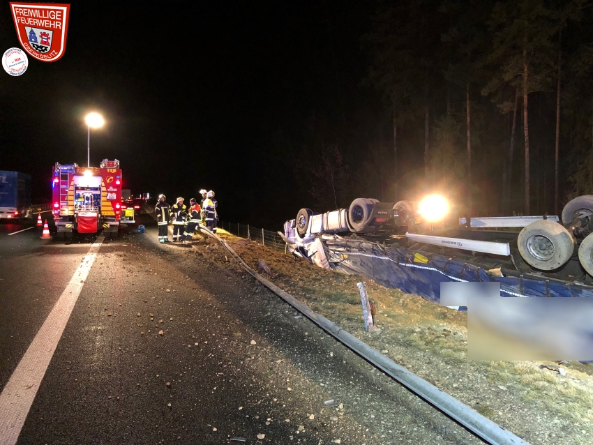 THL | Verkehrsunfall A6 Wernberg-Ost -> Leuchtenberg umgestürzter LKW