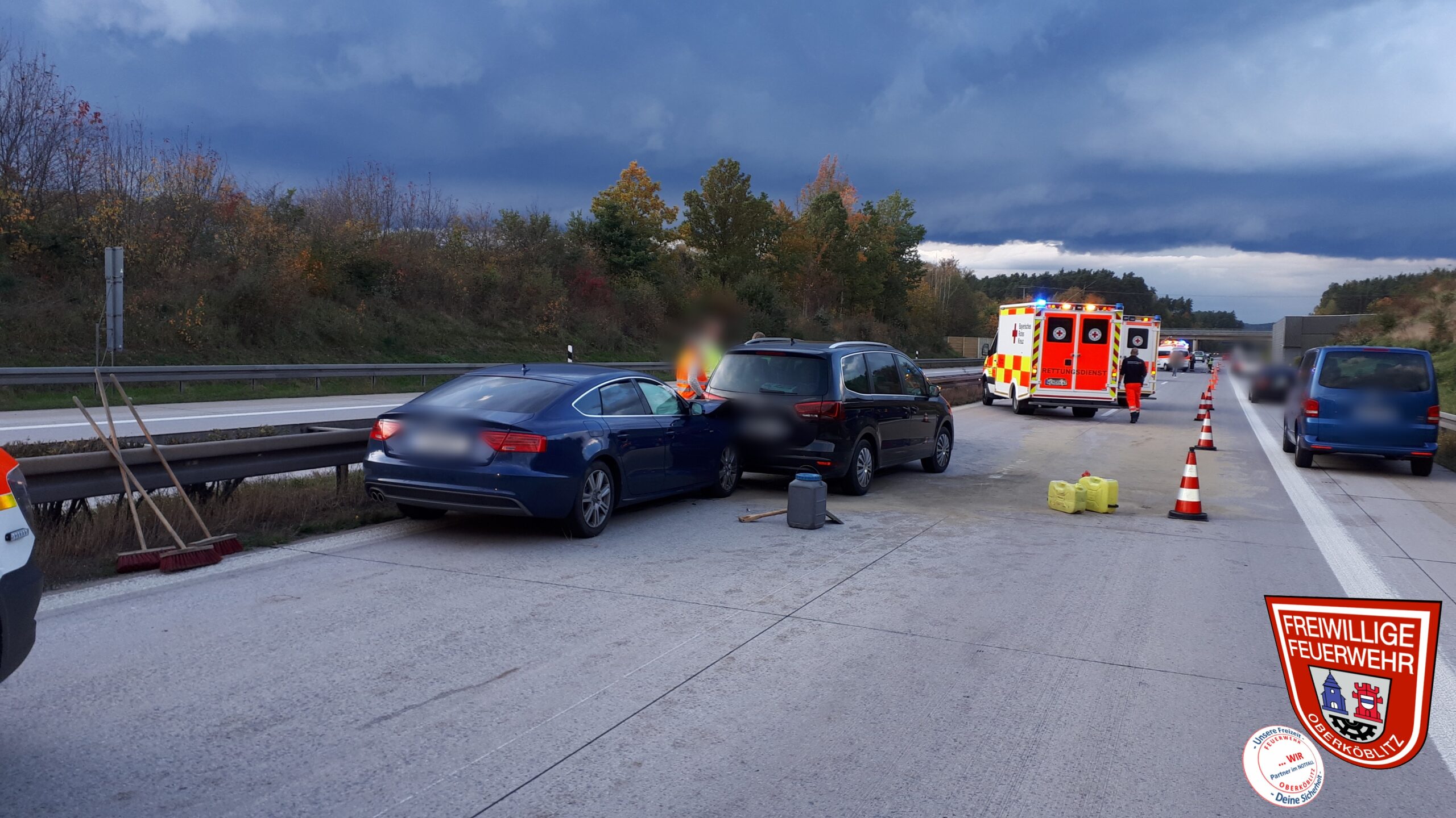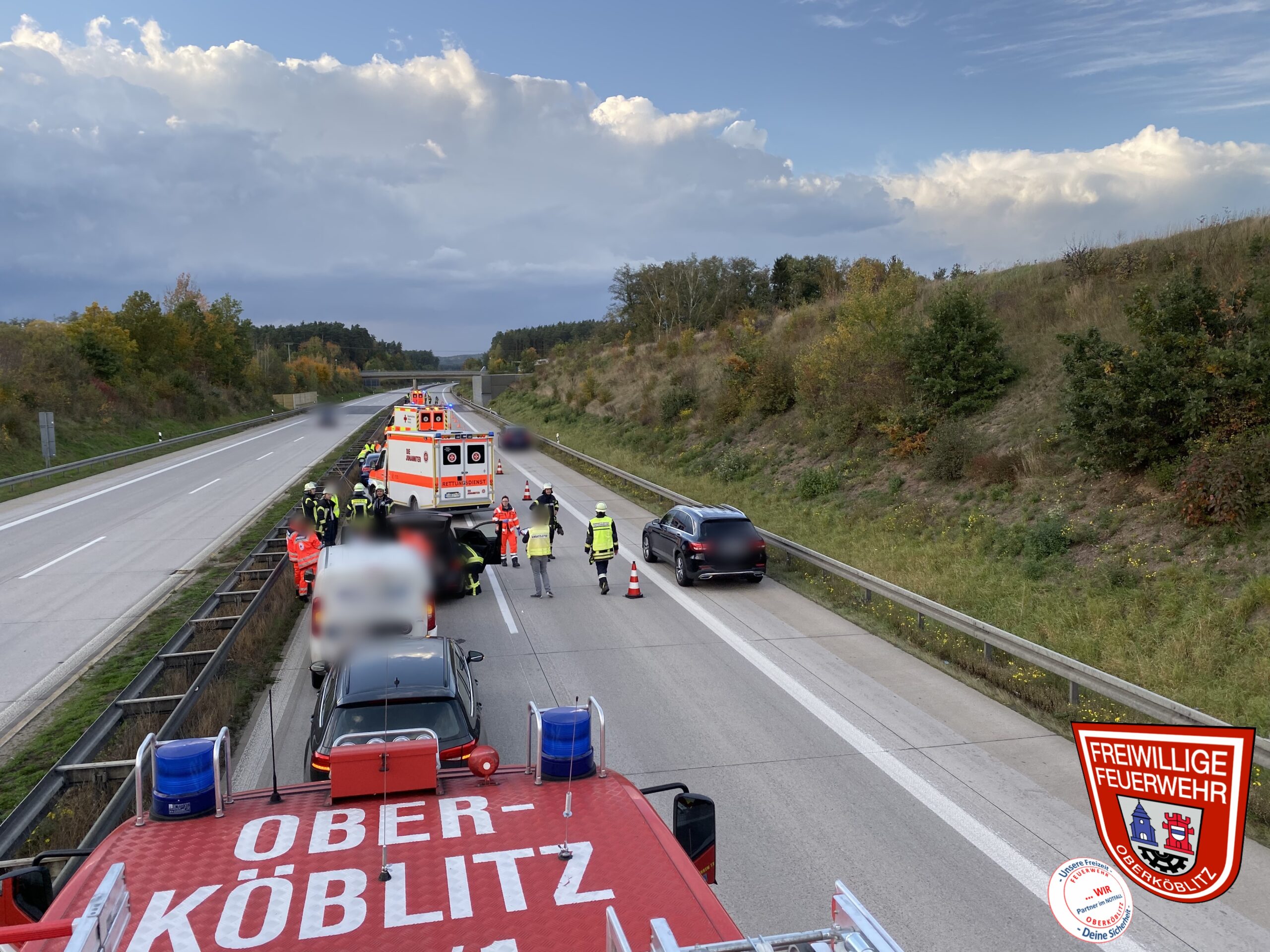 Im Laufe des späten Nachmittages wurden wir zu einem Verkehrsunfall auf die A93 in Richtung Weiden gerufen. Bereits auf der Anfahrt wurden wir informiert, dass sich hier sogar zwei Unfälle ereignet haben sollen. Vor Ort stellten wir fest, dass sich in einem Bereich von knapp 300m drei Auffahrunfälle auf der Überholspur ereignet hatten. Insgesamt waren sieben Fahrzeuge beteiligt.