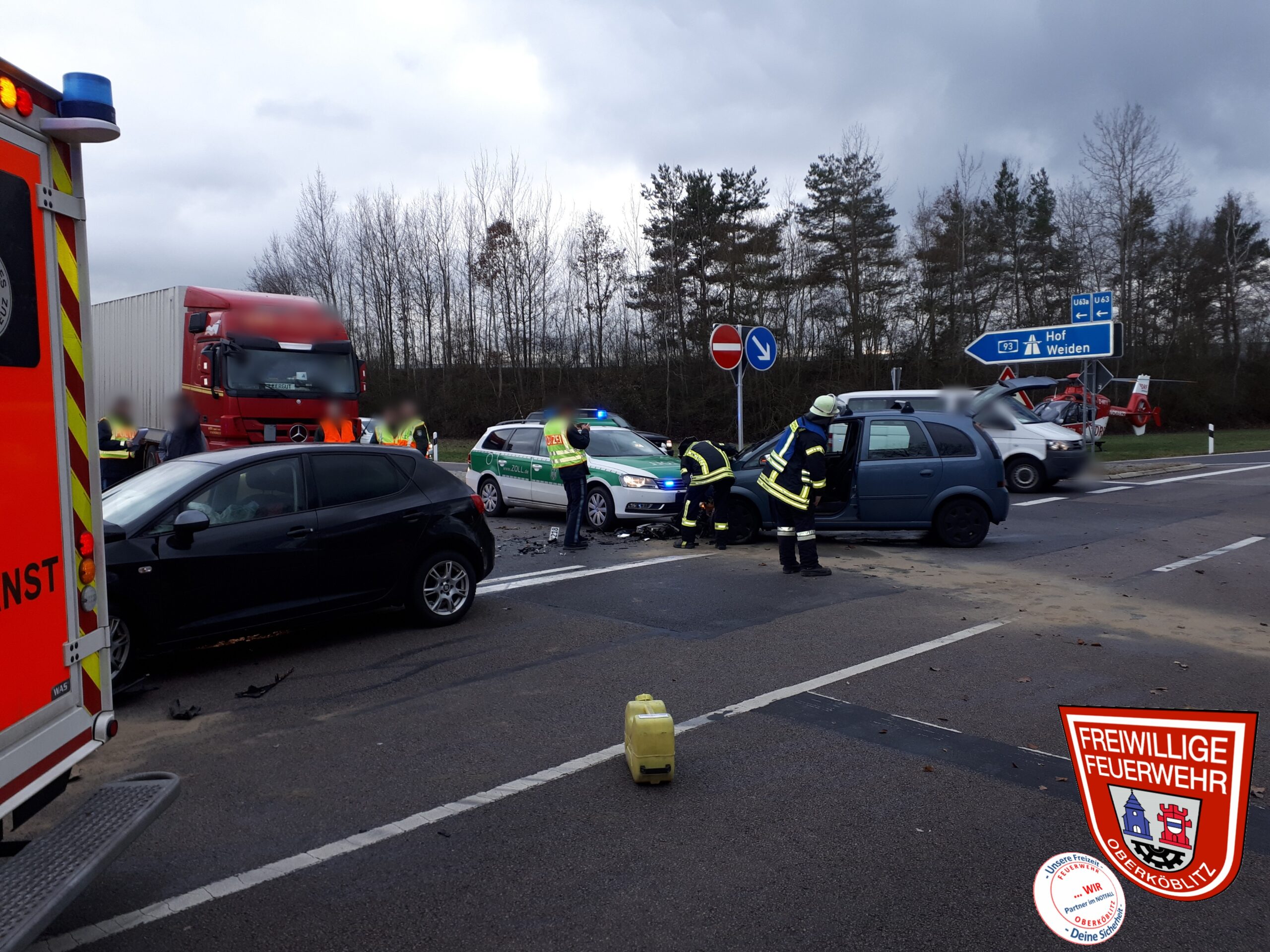 THL- Verkehrsunfall auf der B14/Höhe der Auffahrt A93 Richtung Weiden
