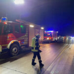 Bis zum Eintreffen des alarmierten Rettungsdienstes übernahmen wir die Betreuung der beteiligten Personen und fingen auslaufende Betriebsstoffe auf. Für die Unfallaufnahme der Polizei und die Reinigung der stark verschmutzten Fahrbahn musste die Einsatzstelle weiträumig ausgeleuchtet werden.