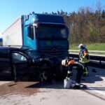 Dadurch waren alle Fahrspuren blockiert. Insgesamt wurden 3 Personen glücklicherweise nur leicht verletzt. An der Anschlussstelle Wernberg-Köblitz musste aufgrund der Totalsperrung der Verkehr ausgeleitet werden. Da durch die Polizei bereits die Autobahnmeisterei mit VSA angefordert war, übernahm dies bis zum Eintreffen der ABM unser VSA. Anschließend rückte dieser bis zur Einsatzstelle auf, wo für die einspurige Verkehrslenkung an der Einsatzstelle alles vorbereitet wurde.