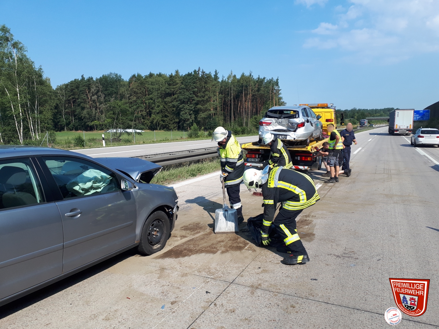 Zu einem Verkehrsunfall mit zwei PKW wurden wir auf die A93 in Richtung Weiden gerufen. Verkehrsbedingt musste ein Fahrzeug abbremsen. Ein nachfolgender Fahrzeugführer übersah dies und fuhr auf den vorausfahrenden PKW auf. Die beiden Verkehrsteilnehmer wurden verletzt und mit dem Rettungsdienst ins Krankenhaus eingeliefert.