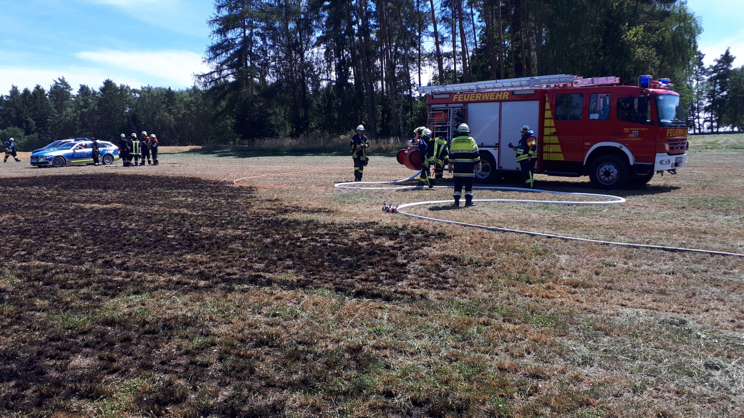 Da auch ein Stromverteilerkasten in Mitleidenschaft gezogen war, wurde der Energieversorger zur Einsatzstelle angefordert, um diesen zu prüfen und zu sichern.