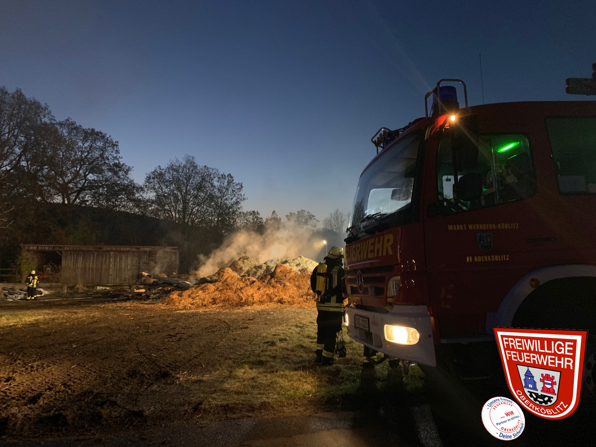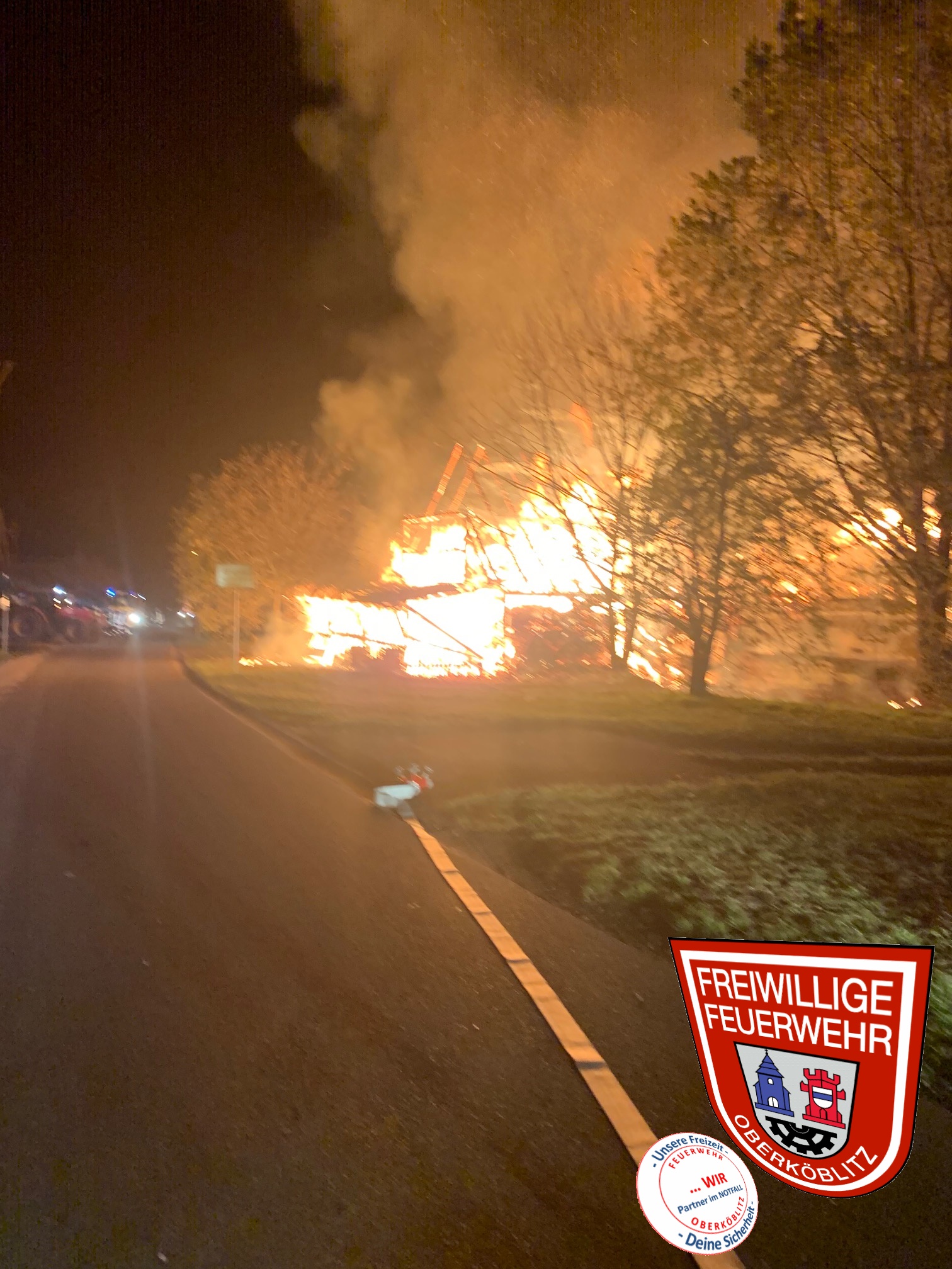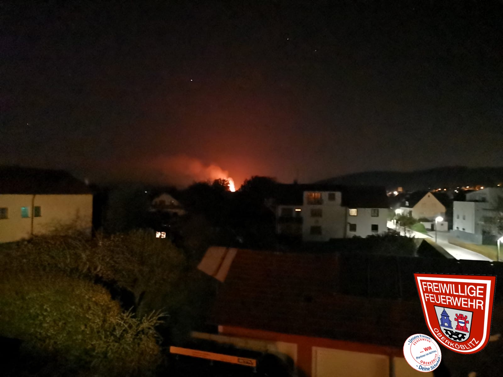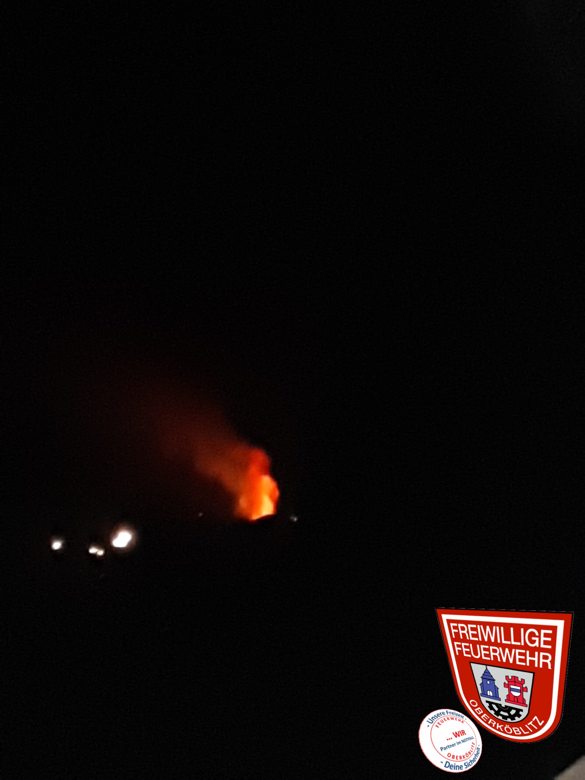 Von Oberköblitz war bereits der Feuerschein deutlich zu sehen. Unser LF16/12 traf als erstes von Kettnitzmühle kommendes Löschfahrzeug an der Einsatzstelle ein. Durch den zuständigen Kreisbrandmeister Sebastian Hartl wurden wir mit der Abschnittsleitung für den südlichen Bereich betraut.