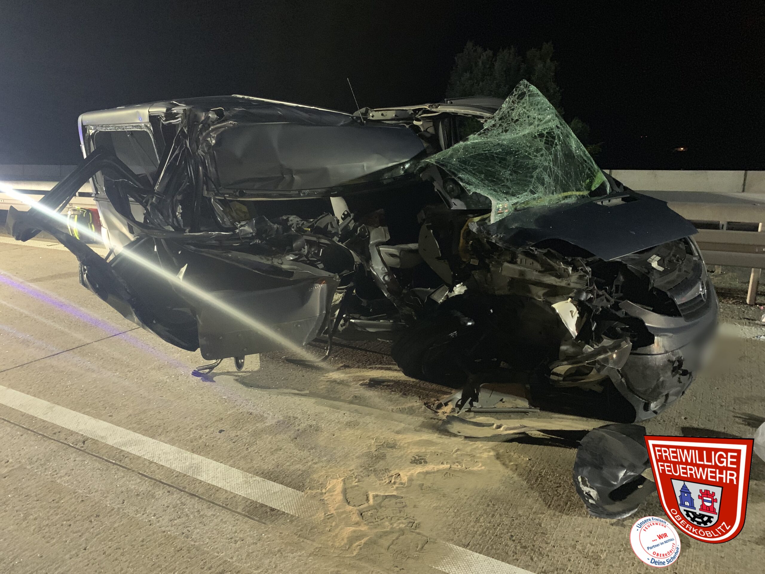 Letzte Nacht wurden wir zu einem schweren Verkehrsunfall zusammen mit den Feuerwehren Oberwildenau, Luhe, Schirmitz und Weiden auf die A93 in Fahrtrichtung Norden alarmiert. Die Meldung lautete VU mit PKW mehrere Personen eingeklemmt. Beim Eintreffen an der Einsatzstelle stellte sich heraus das keine Personen mehr im Fahrzeug eingeklemmt waren. Wir unterstützten die örtlich zuständige Feuerwehr Oberwildenau bei den Reinigungsarbeiten und leuchteten die Unfallstelle mit aus.